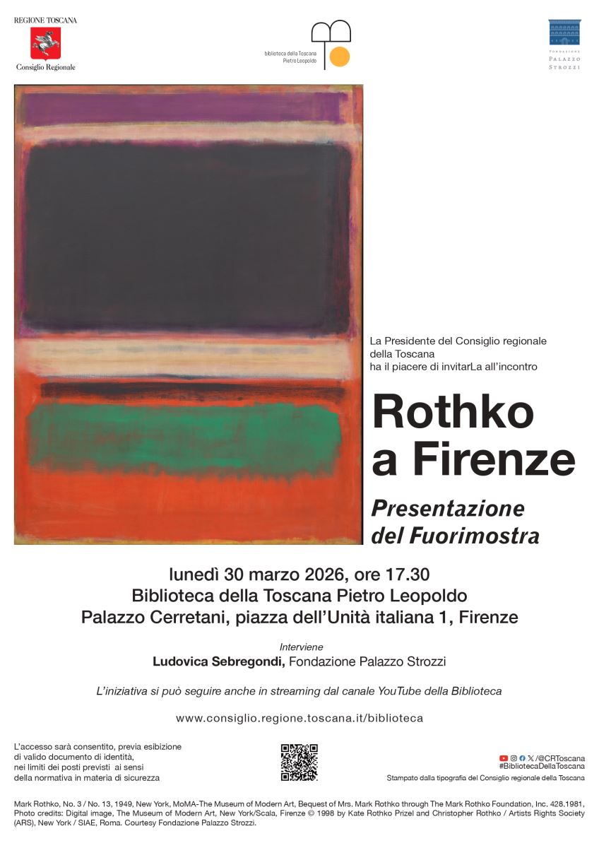 Rothko a Firenze, curata dalla Fondazione Palazzo Strozzi, la biblioteca della Toscana Pietro Leopoldo ha il piacere di presentare il