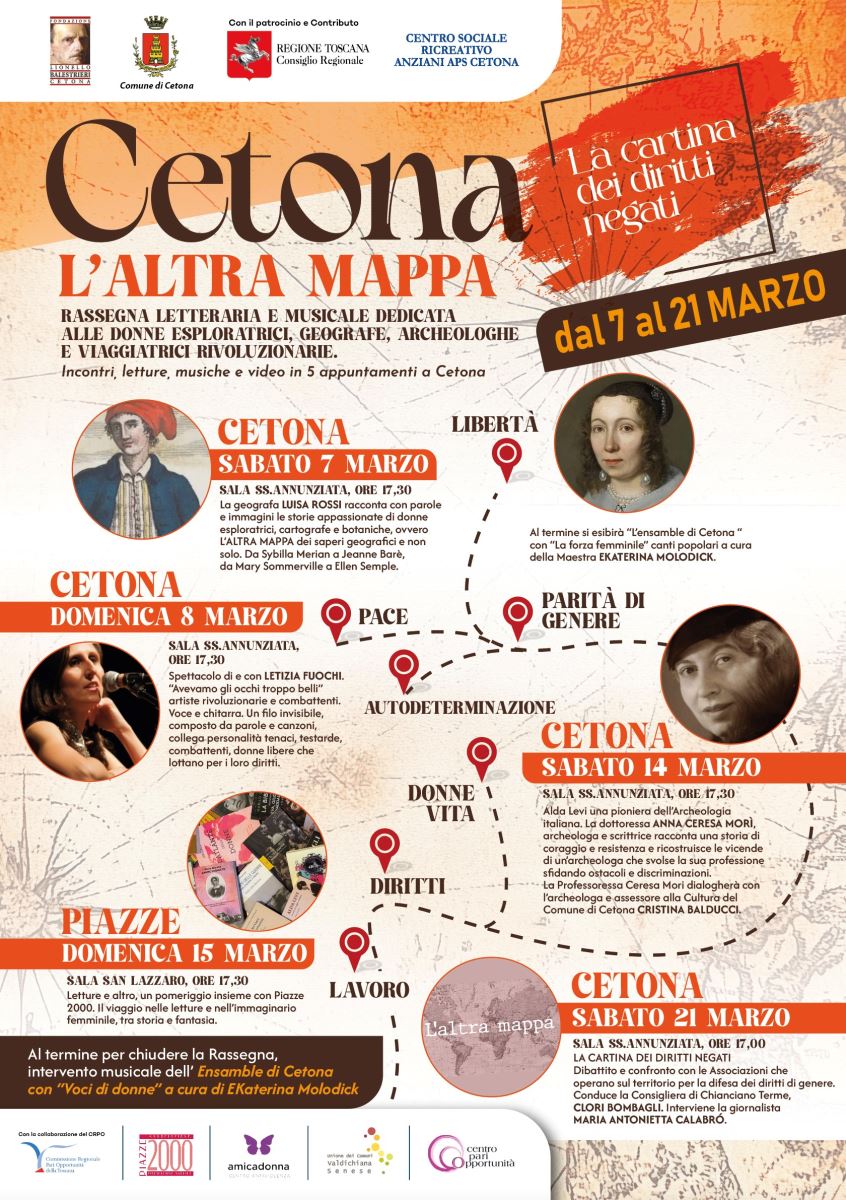 1) FONDO LIONELLO BALESTRIERI - Rassegna letteraria e musicale L'Altra Mappa, donne esploratrici, geografe,archeologhe e viaggiatrici rivoluzionarie. Incontri, letture, video e musica in cinque appuntamenti dal 7 al 21 marzo 2026.