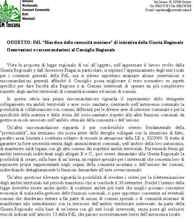 allegato (all.1), presentato dall’UNCEM e fatto proprio dal Consiglio delle